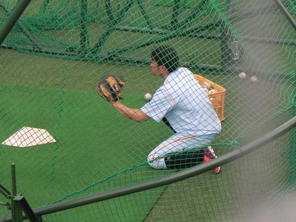 軟式球場を貸切で小林くんがマンツーマン練習していました。