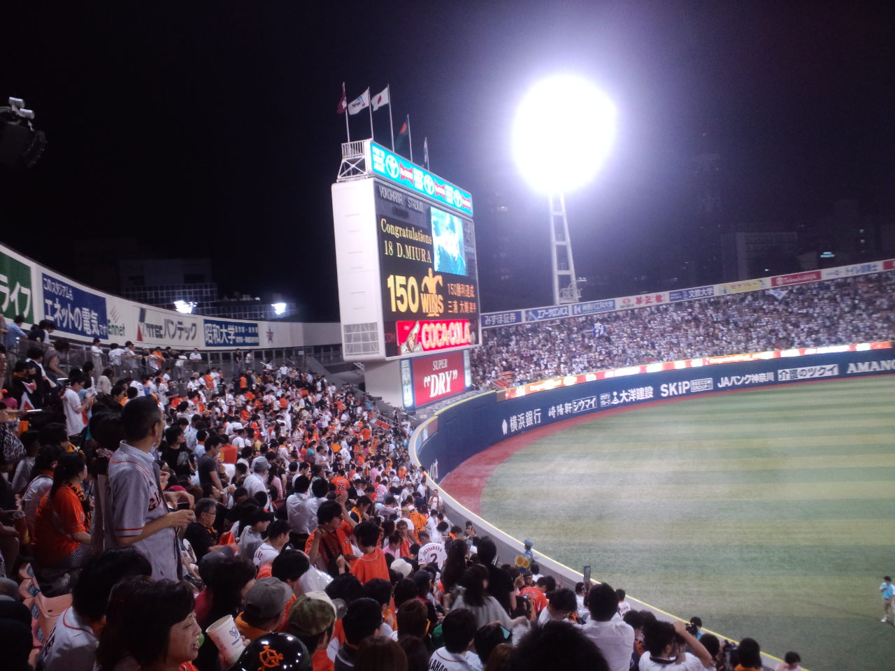 そして、相手を褒め称えることには定評のある巨人ファン。試合後の三浦150勝セレモニーに、あちこちから「おめでとー!」の声が飛ぶ。管理人も「おめでとー!」と二度ほど叫んできた。ぶっちゃけた話、番長は巨人や中日にいたら200勝してても不思議ないもんな。弱小チームのエースとしてようやく得た勲章を、素直に褒めないヤツなんざ野球ファンじゃないよ。心からおめでとうだわ。