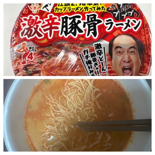 そして麺が細い。カップラにしては異常なほどの細麺でツルツル入る。辛いんだけど美味しいし、麺の食感もいいから箸が止まらない。気づけば汗だくである。