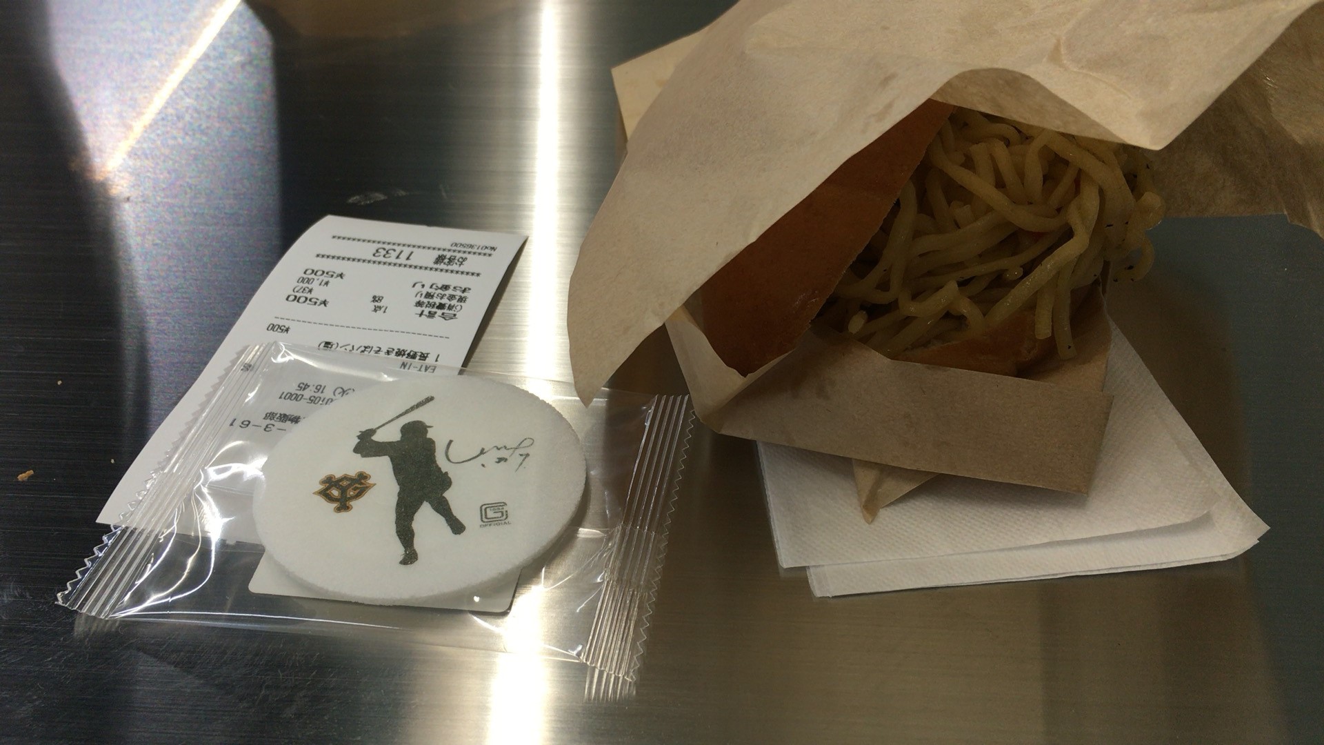 昨今の糖質制限、炭水化物制限ダイエットブームに真っ向から逆らうような炭水化物&炭水化物だけど、パンも焼きそばも美味い。ボリュームも満点どころか120点、150点。パンで500円も取るんだからそりゃそうだろう、って声も聞こえるけど、球場メシって500円払ってもろくなもん食えないことも多いからね。これはホントに当たり。長野は去年もパンだったけど、今年の方が全然いい。みなさんぜひご試食あれ。