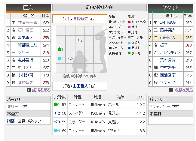 とにかくよかったのはコントロール。低めにコースに丁寧に丁寧に投げる。相手打者が誰であれ、局面がどうであれ、丹念に小林のミット目掛けて投げ続ける。唯一、会澤に打たれた犠飛だけが、低めに投げ切れず浮いて真ん中にスッと入った失投。ちょい悔しいね。