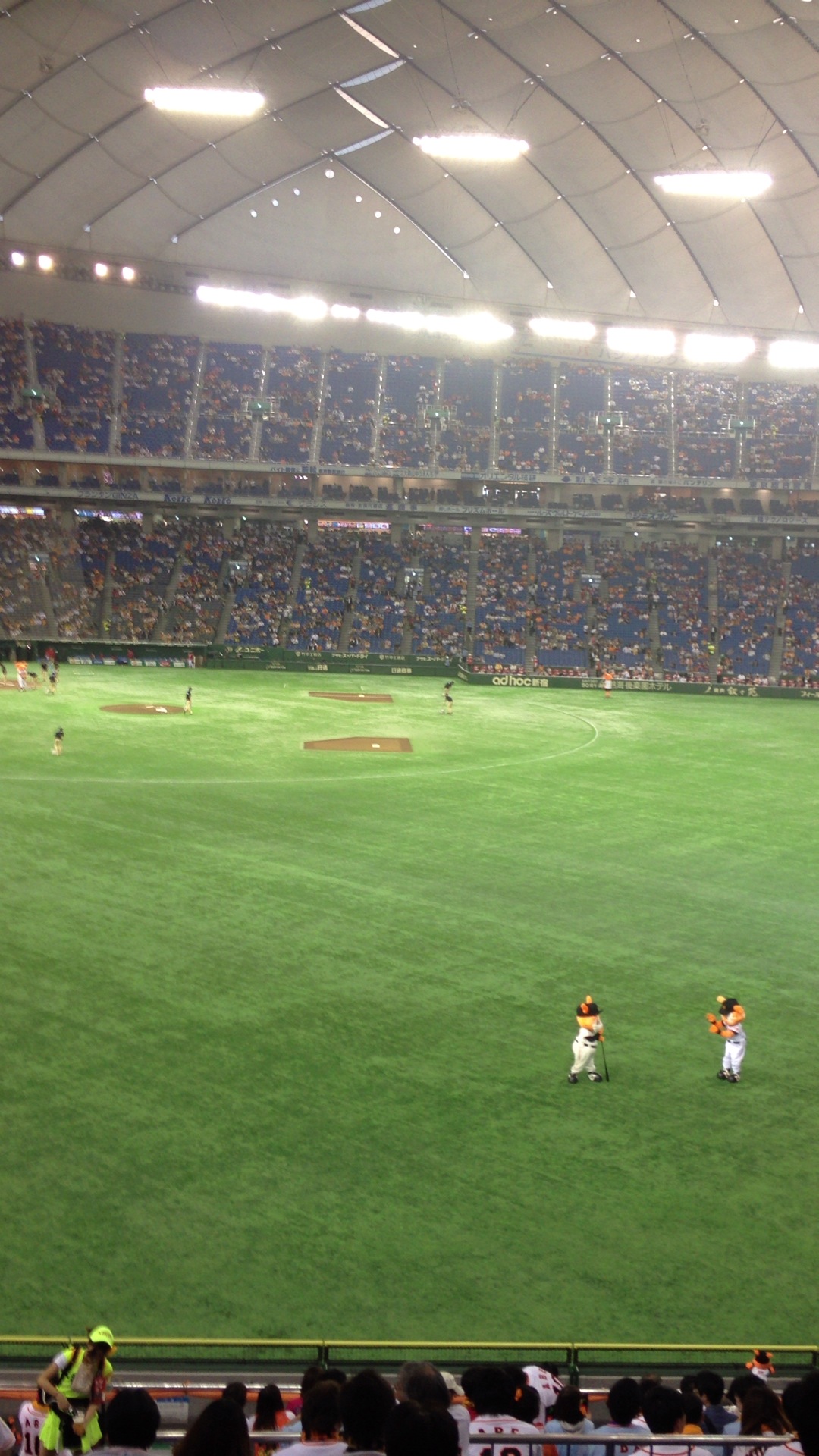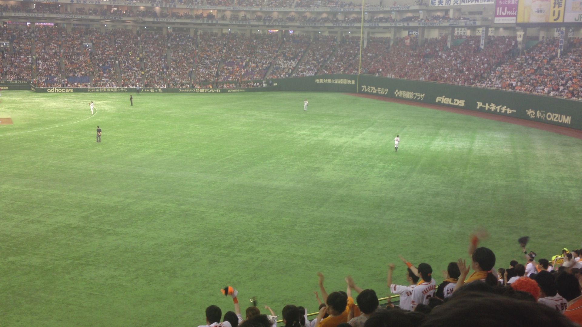 ご存じの方も多いかと思いますが、ドームの立ち見エリアはとてもとてもハードでお年寄りにはしんどい環境。やたらと話しかけてくるおばあちゃん方だったので管理人も気になってしまい、立ち見だと大変だから指定席探して買い換えた方がいいと思いますよと助言。ドームが初めてのおばあちゃん方には場内券売所の場所もわからないだろうから、なんとなく流れで管理人が案内。そこに行くまでも階段の昇り降りがしんどそう。なんでも今日は子供さんから立ち見のタダ券をもらって来たんだって。