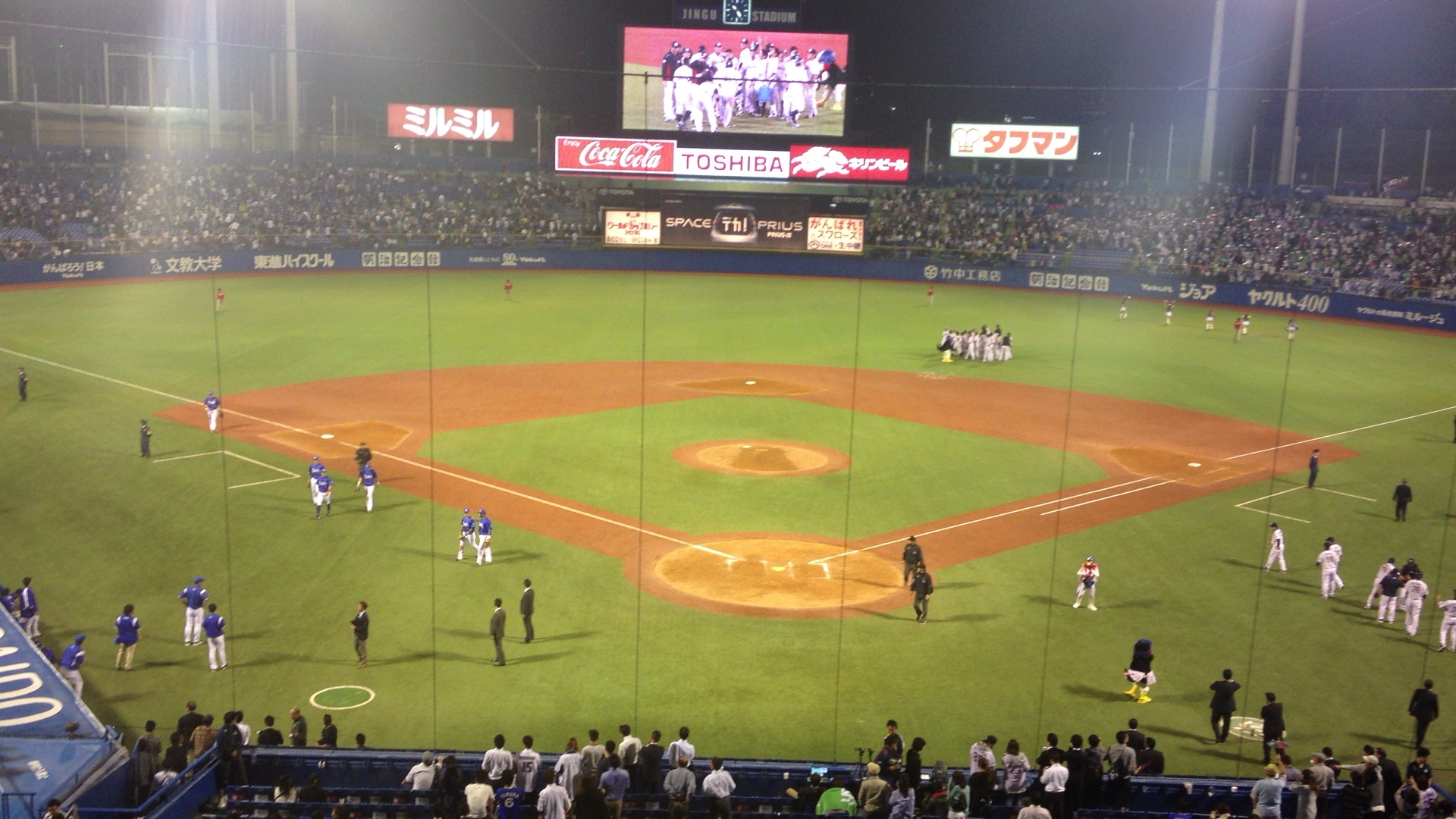 守備でほめたいのは村田。これぞ村田のファインプレー2つ。特に川端に同点2ランを打たれた直後のファインプレーは大きかった。村田のすごいところは、転がって捕ろうが飛び込んで捕ろうが、すぐに起き上がってファーストにストライクを投げられるとこなんだよな。送球の正確さは他に類を見ないほどだと思う。