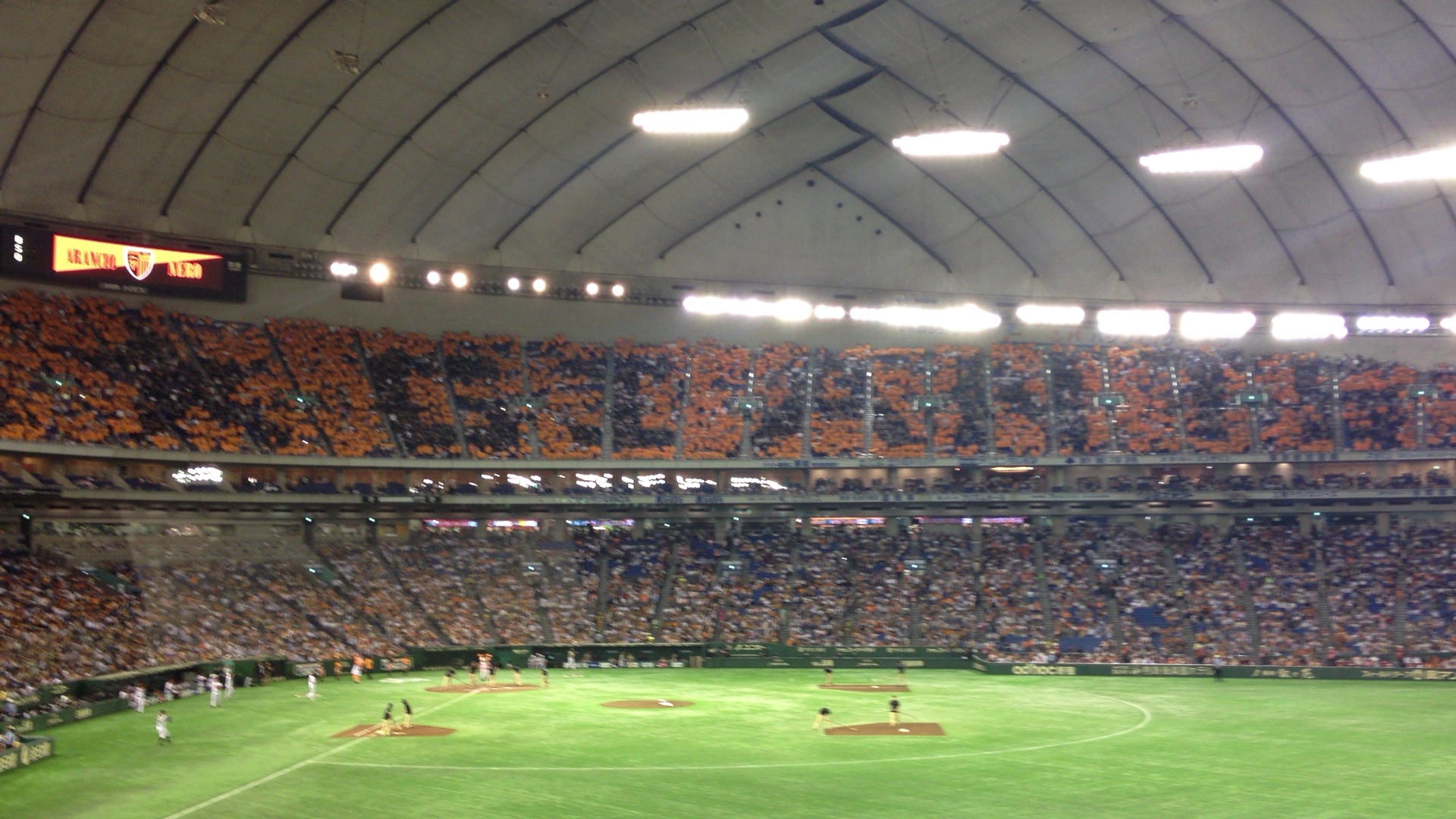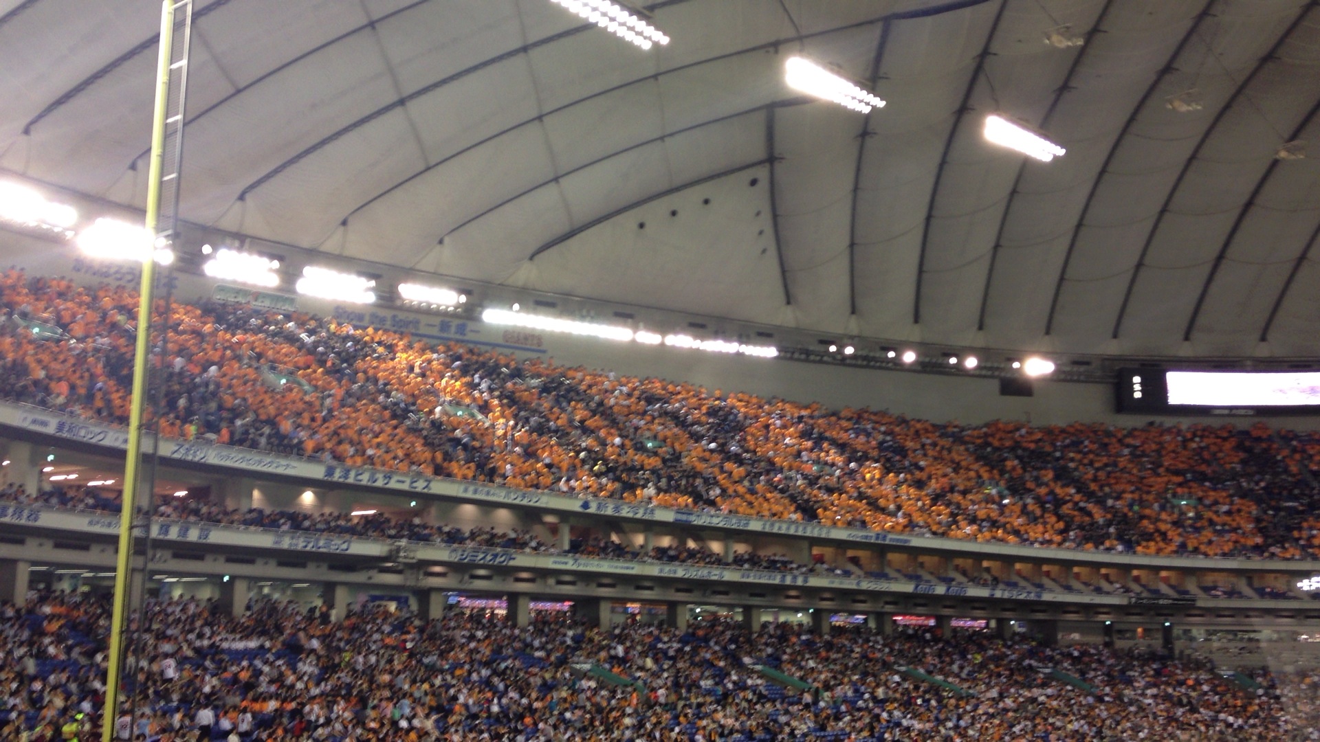 今季2回目のオレンジユニ配布デーでオレンジ一色に染まる東京ドーム。
