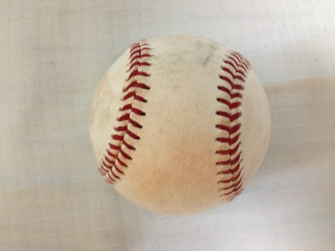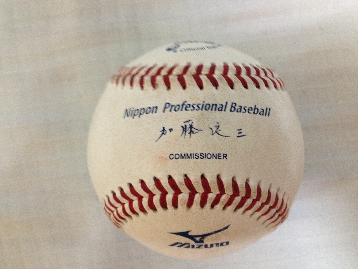 そして、なんとなんとバレンティンのファールボールをゲットする幸運なアクシデント。ものすごいライナーで飛んできて、管理人の右後方の空席にぶつかり跳ね返ったところをゲットでした。いやぁ、なんか汚れてるのが生々しくてうれしいし、飽きるほど球場行ってるけどボールゲットしたの初めてだな。そして、まじまじとボールを眺めて例のものを見付ける。