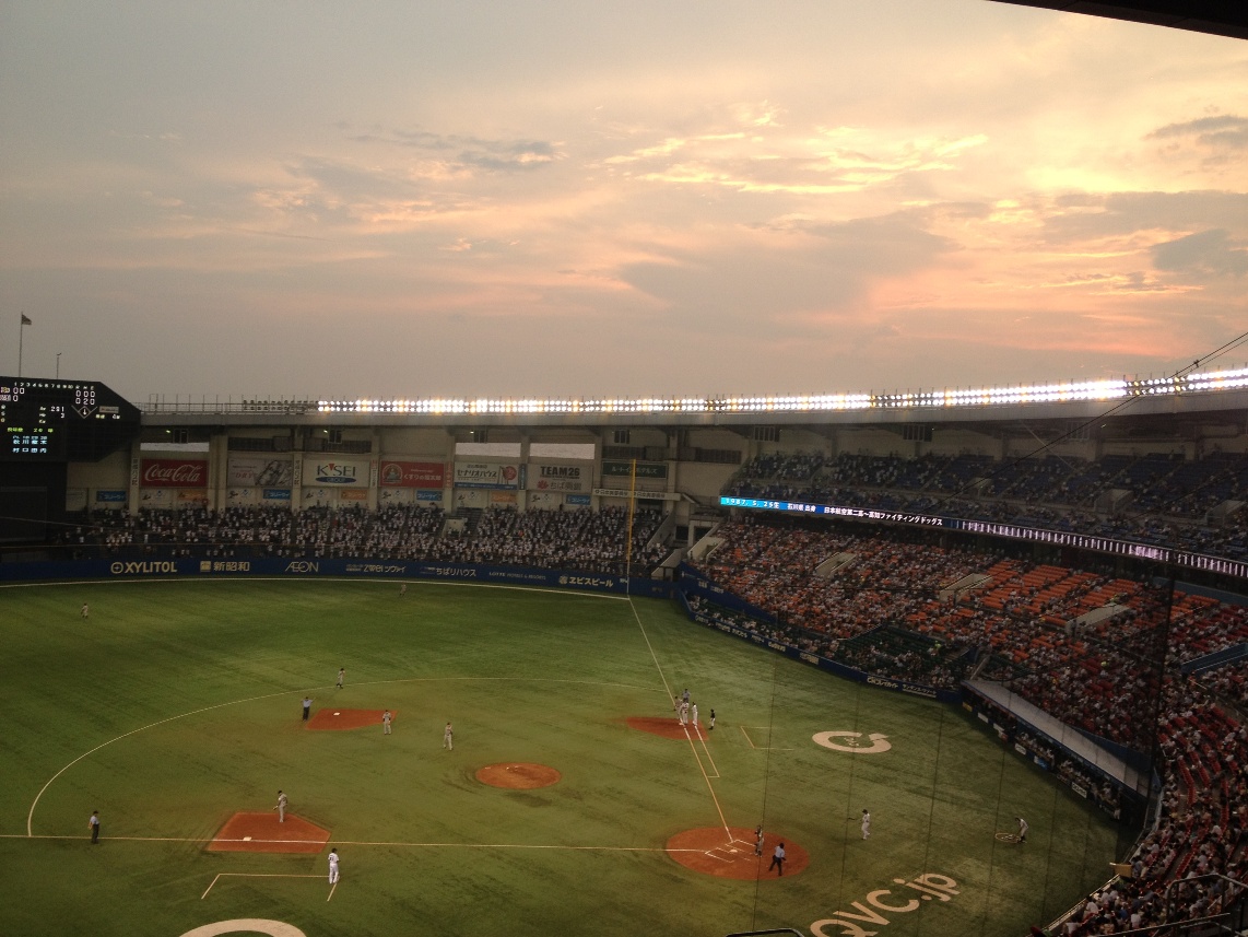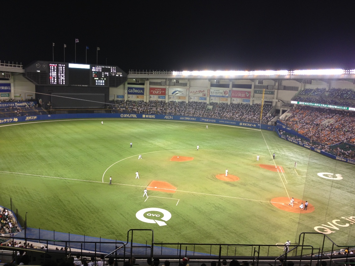 いざ着いてみたらご覧のようにすんごいいい席。自分じゃなかなか買わないであろう、迫力満点のいい席でした。ちょうど一塁ベンチの上方に位置する場所なんですが、ネットが低いせいで右打者のファールがバンバン飛んでくる。驚くほど飛んでくる。そんな緊張感もある実にいい席。