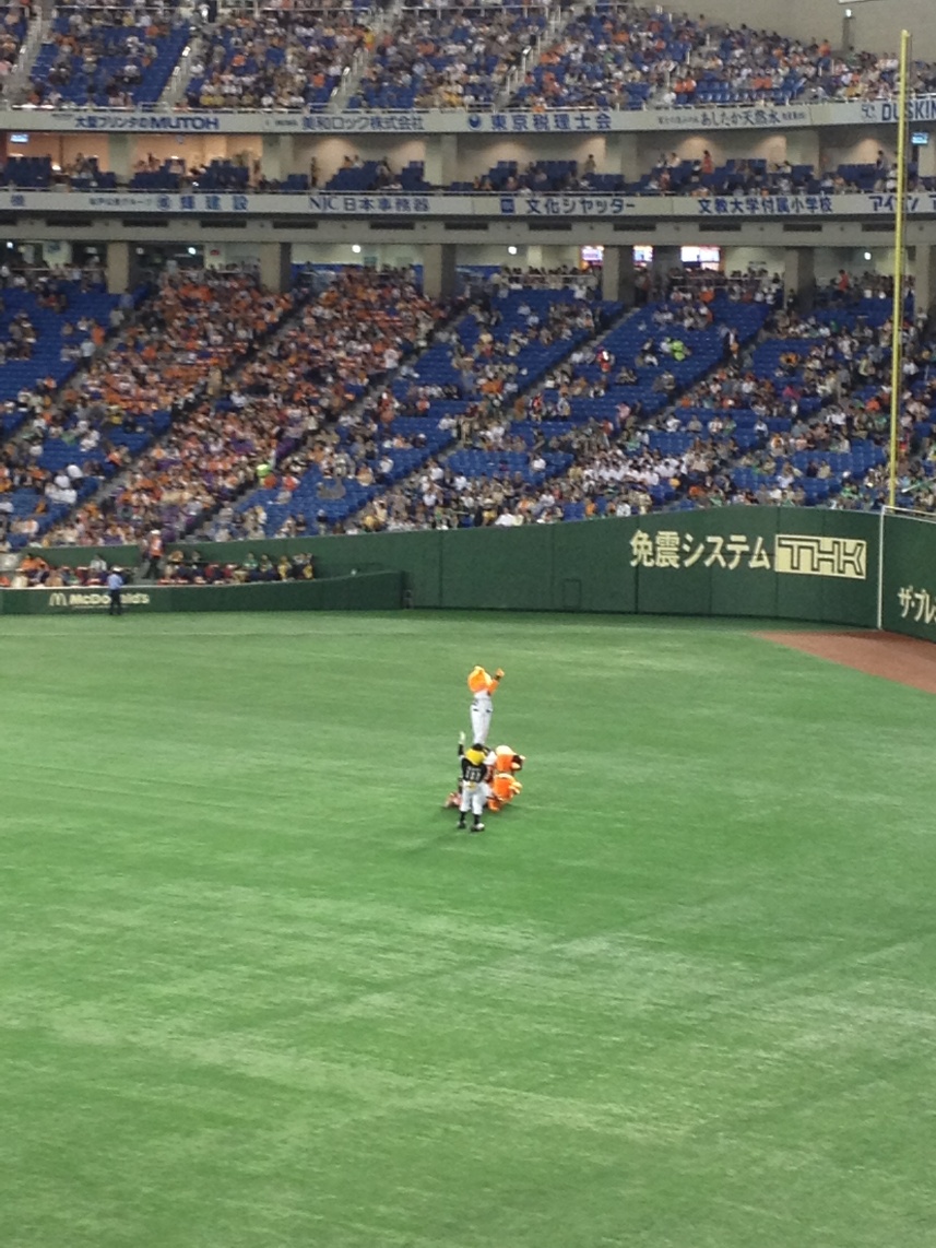 その野球の試合が始まる前、某新宿区の球場では別の催し物が行われてました。集合時間よりもちょっと早く着いたので、それが終わるのを待つ羽目になりましたが、思わず声が出た。