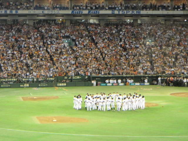 さあ、舞台は整った。役者も揃った。対するヤクルトは巨人キラー村中登場。相手にとって不足なし。地方の巨人ファンも見つめる中、ドームが異様な空気に包まれる中、このプレッシャーを打破して辰徳よ宙に舞え。