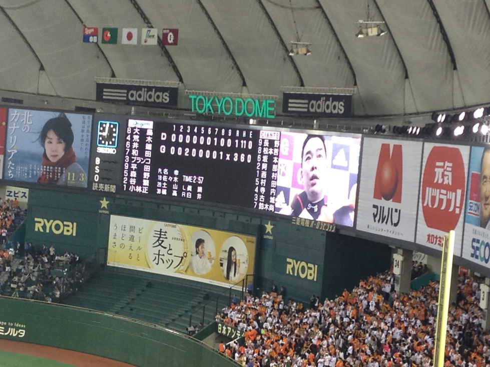 エースが良くないながらも凌いで15勝目到達。打つ方もクリーンアップが打点を挙げ、不振のどん底にいた村田も大暴れ。マシソン復帰登板もあって言うこと無しに近い試合。