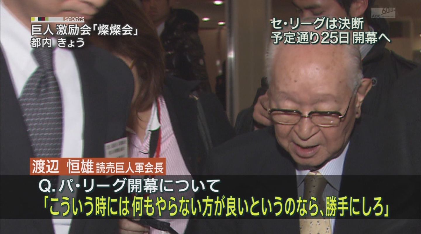 でも、選手だけでなく、球場関係者、弁当、物販の卸売、ひいては対戦相手の選手スタッフが泊まるホテルまで、野球で飯を食ってる人は山ほどいる訳でさ。こういう自粛、中止の話は経済にとってマイナスにしかならん。