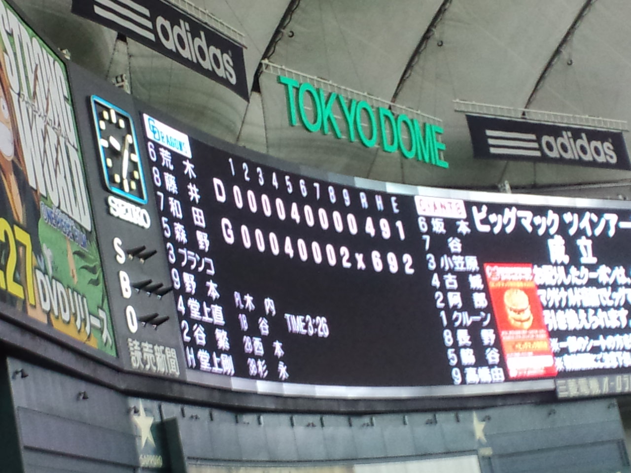 | 巨人 | 1 | 2 | 0 | 2 | 0 | 5 | 2 | 0 | 0 | 12 |