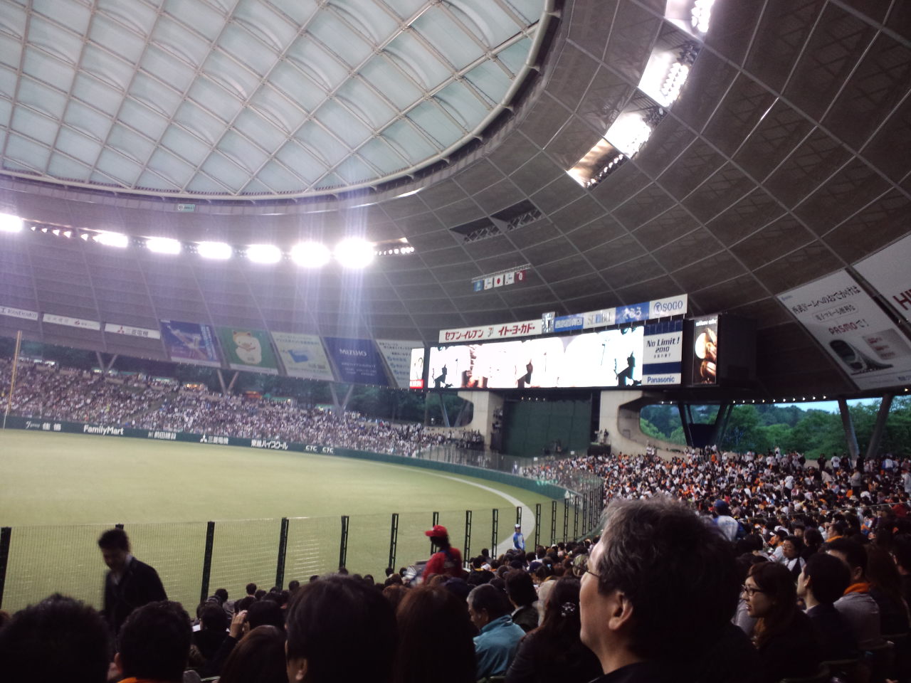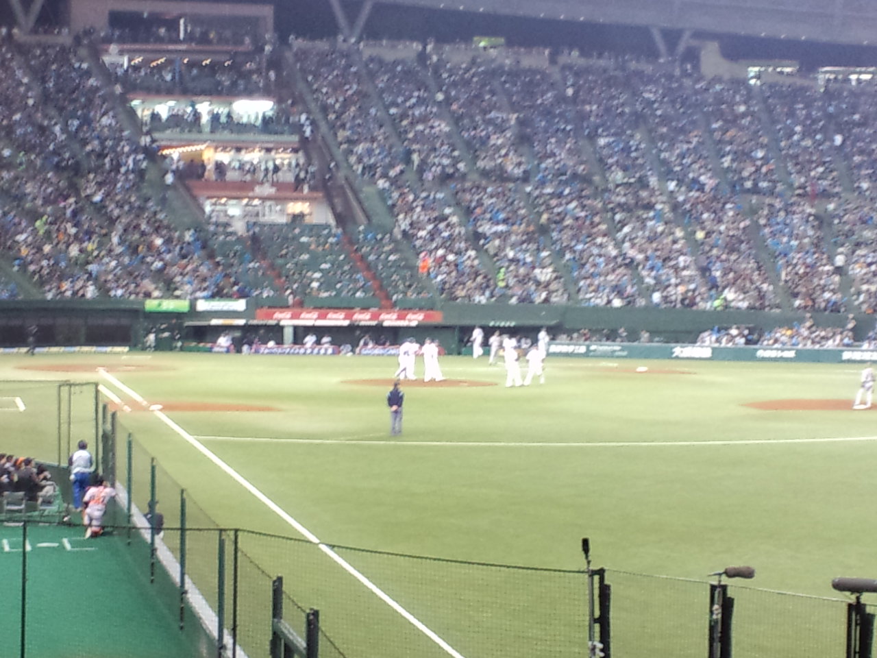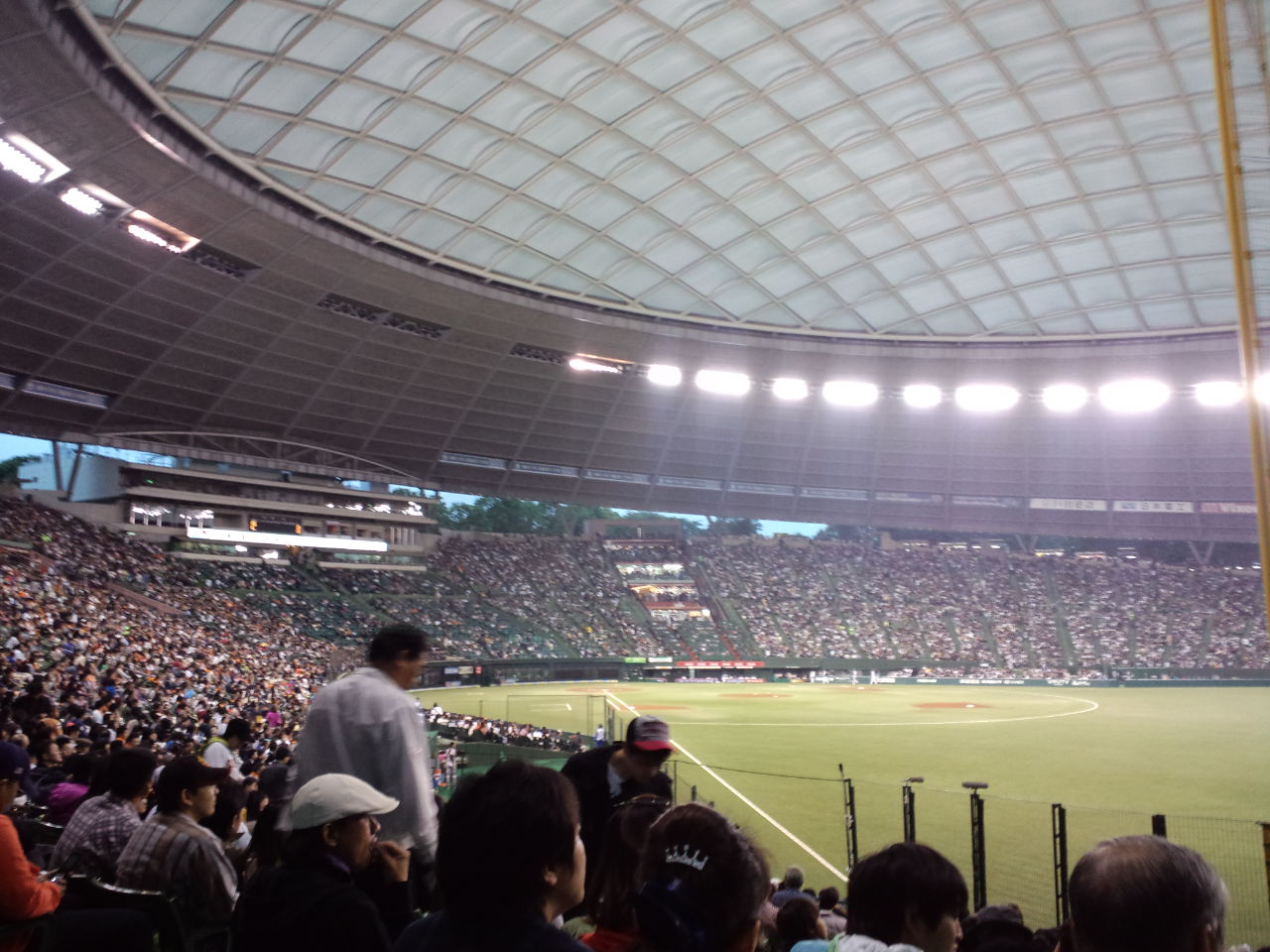 ・・・でも楽しい。白い屋根のドームに慣れた身にとっては、天気のいい日にここで野球を観てるだけで楽しい。星空が見られればもっといいんだけどね。