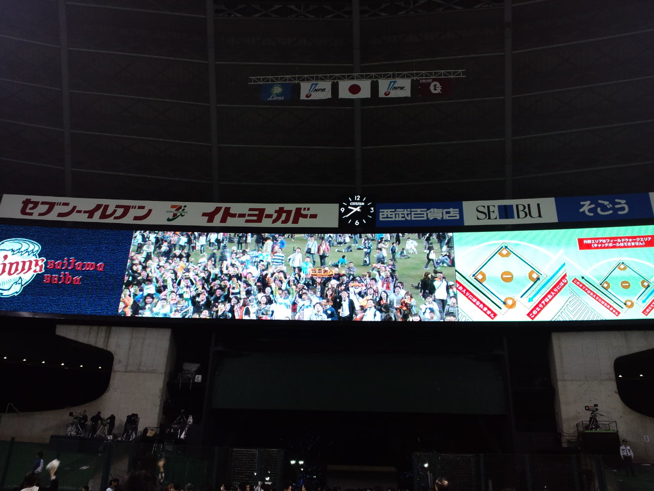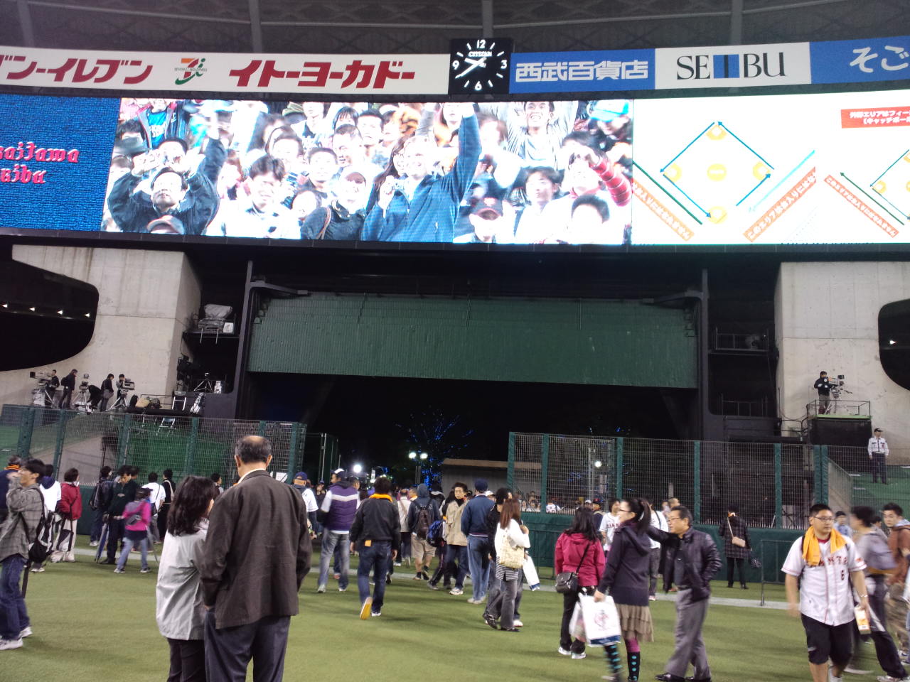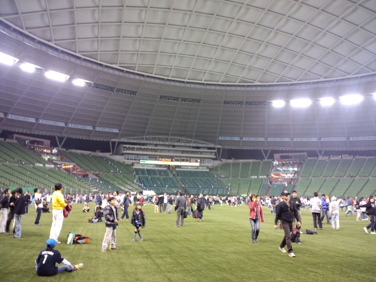 ・・・でも楽しい。白い屋根のドームに慣れた身にとっては、天気のいい日にここで野球を観てるだけで楽しい。星空が見られればもっといいんだけどね。