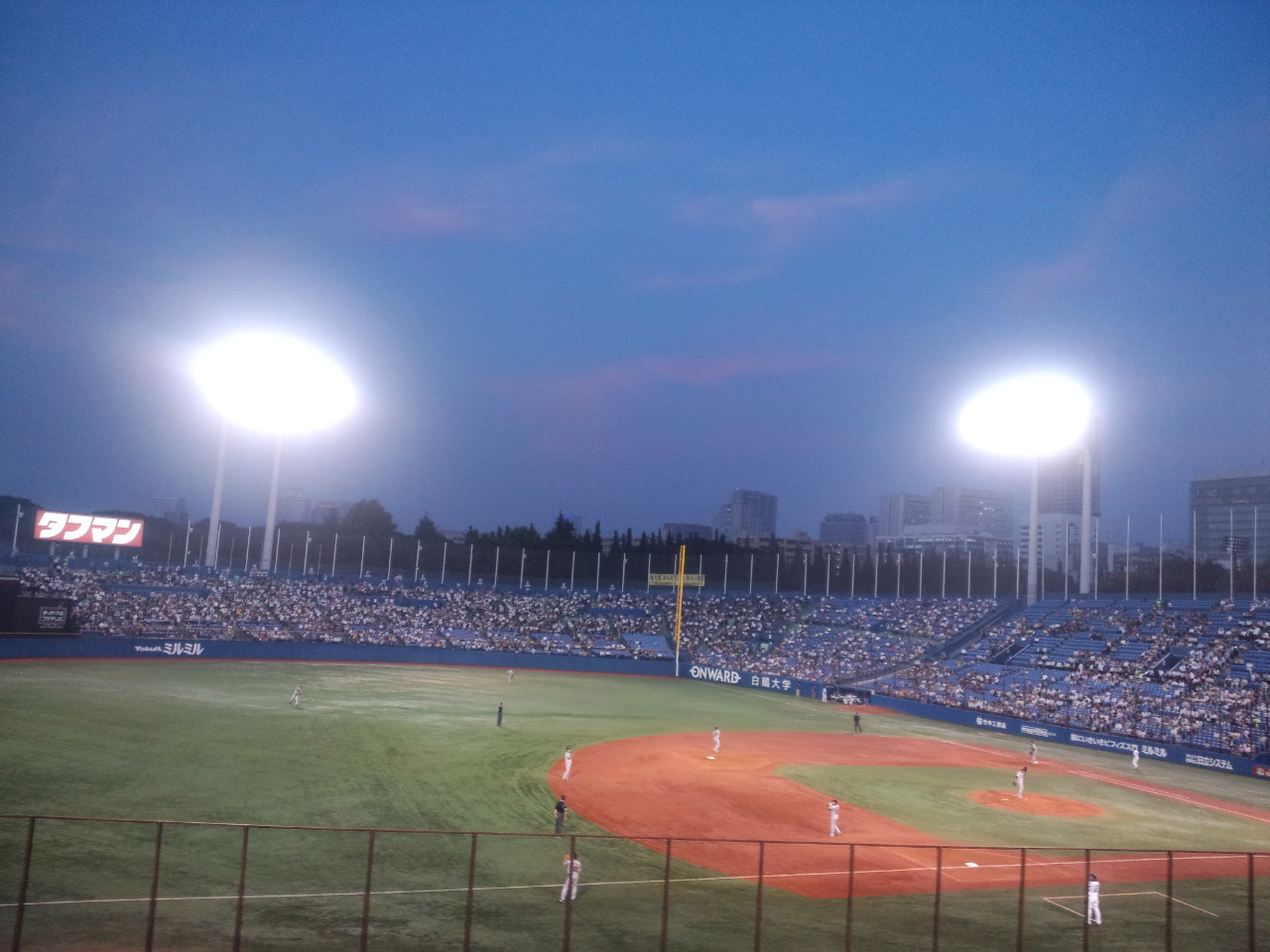 雨で中止が無いとか、やる方も観る方も快適とかいうことを差し引いても、それでも夏空の下、汗をかきながら観る野球、夜風に身をまかせながらビール片手に観る野球にはかなわない。